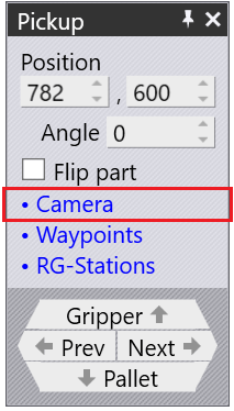 The camera can be opened from the link inside the Pickup panel or click on the bent part and select the Camera function.