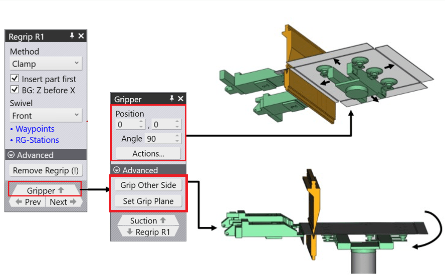 Simulate and check the adapted regripping process