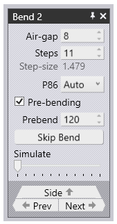 The bend panel can be seen alongside. This has some settings and operations for working on the bend.