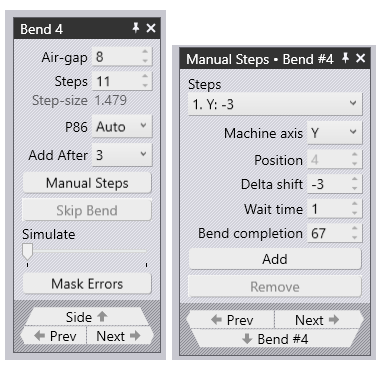 The newly added bend can then be completed manually by selecting the ‘Manual Steps‘ button and adding manual axis moves.