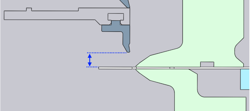 Use the Extract clearance value to adjust the clearance between the ZBW blade and the part while the blade is extracted (or moved to a different position for the next bend). The image below shows how the clearance is measured