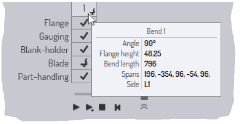 The blade settings for each bend can be edited by accessing the Blade Panel. To access the blade panel for a particular bend: