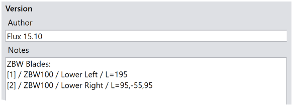 Note 2: The notation is also used to express the blade length in the NC code that is generated. The Notes section of the NC code shows this blade composition thus: